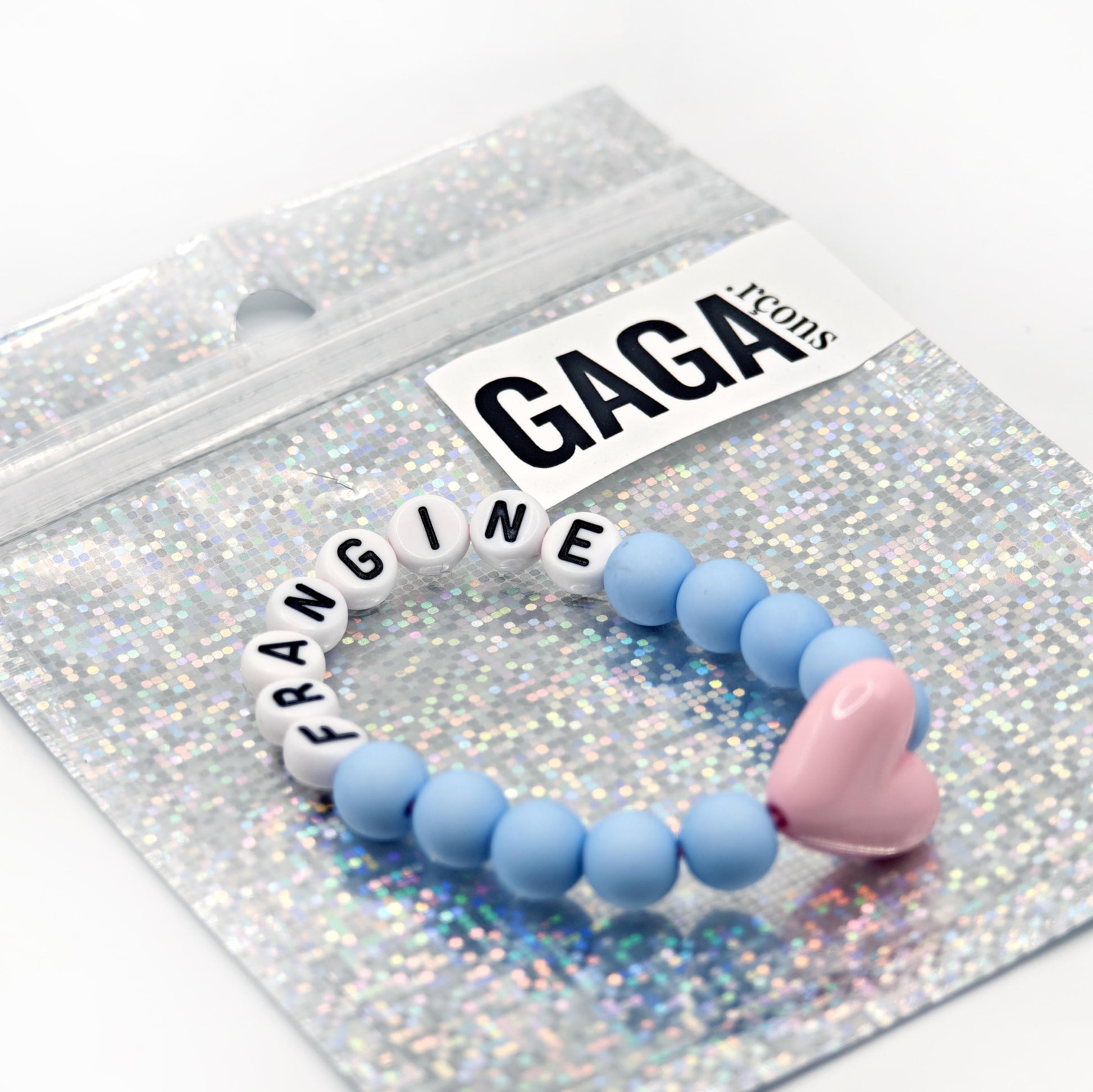 Bracelet GAGA - Bleu ciel mat, Blanc & Maxi coeur Rose