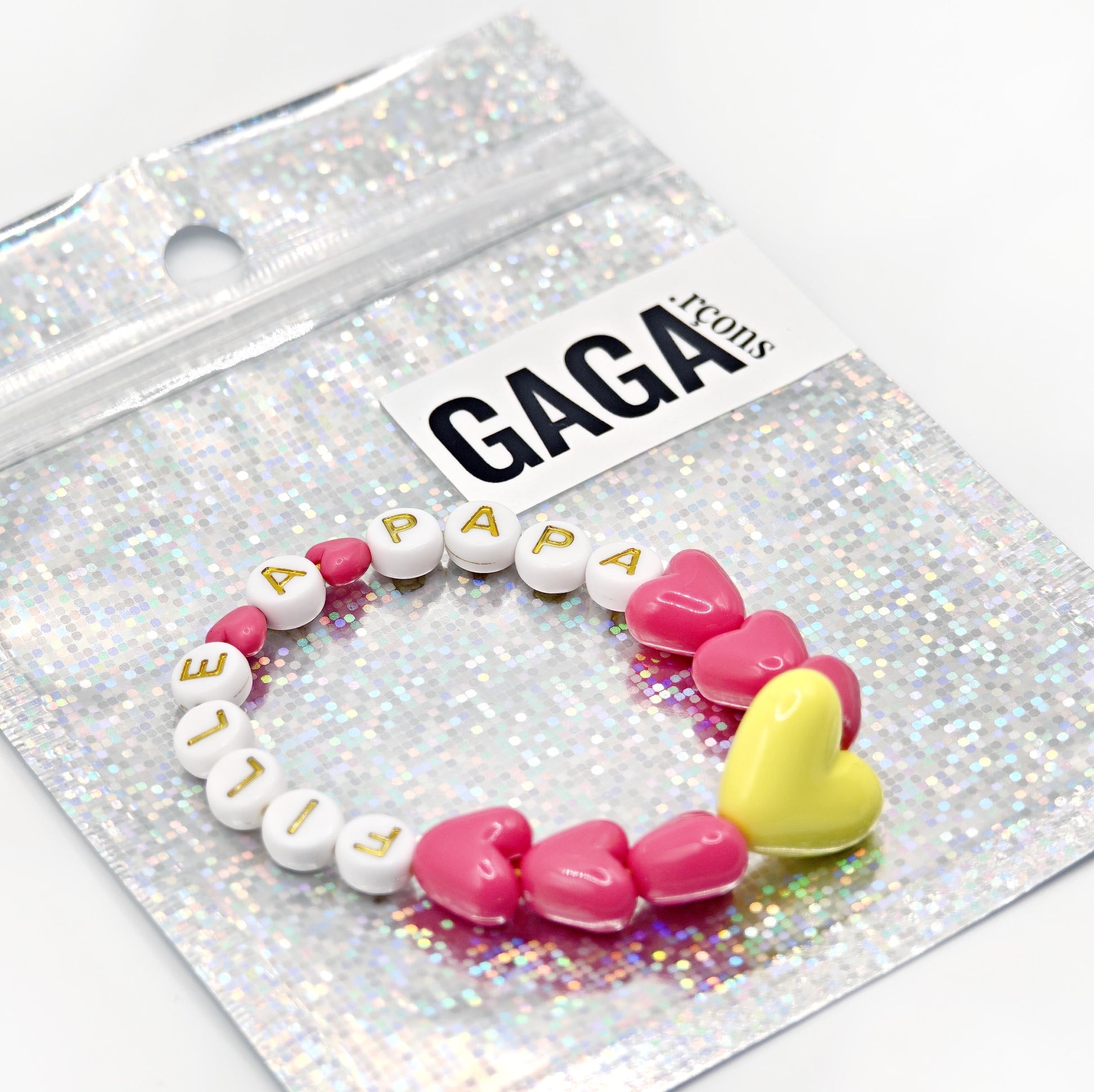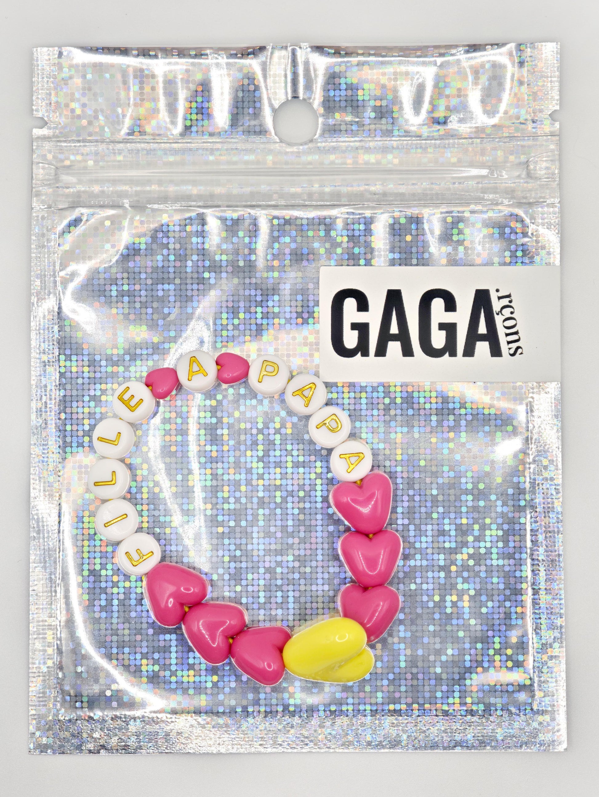 Bracelet GAGA - Fuchsia, Blanc doré & Maxi coeur Jaune