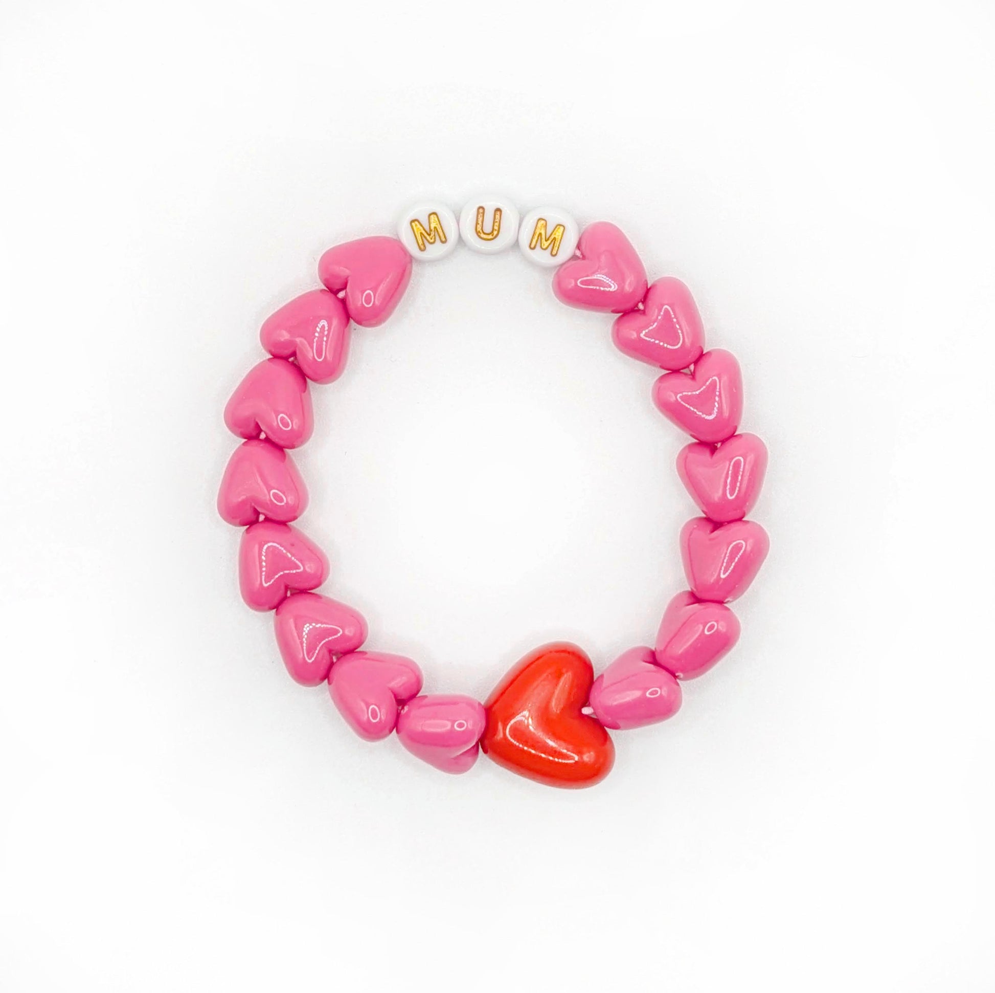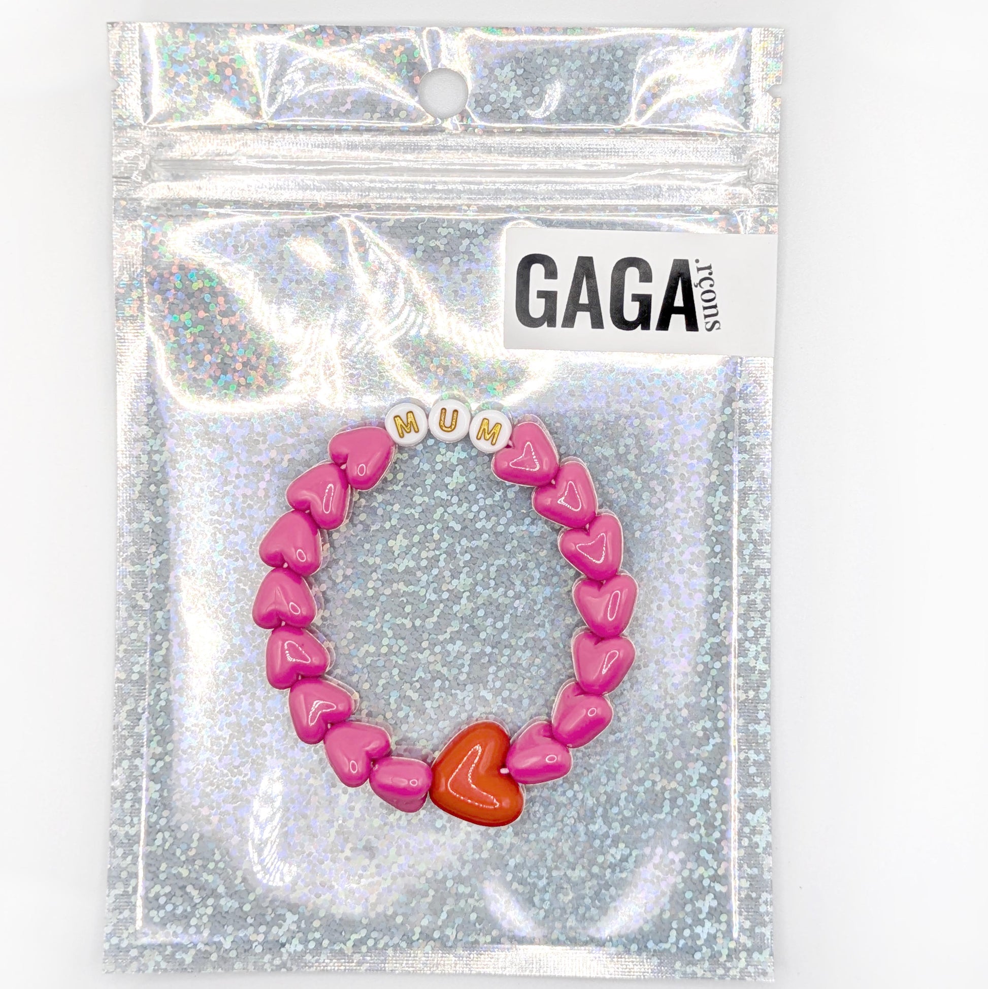 Bracelet GAGA - Fuchsia, Blanc doré & Maxi coeur rouge
