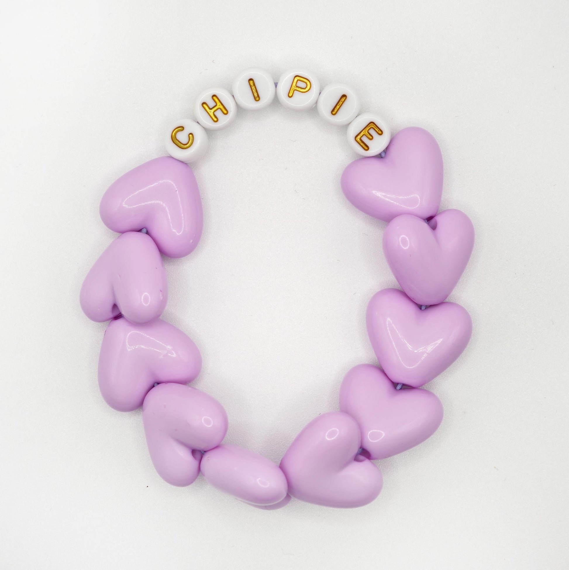 Bracelet GAGA - Full MAXI coeurs Lila & Blanc doré