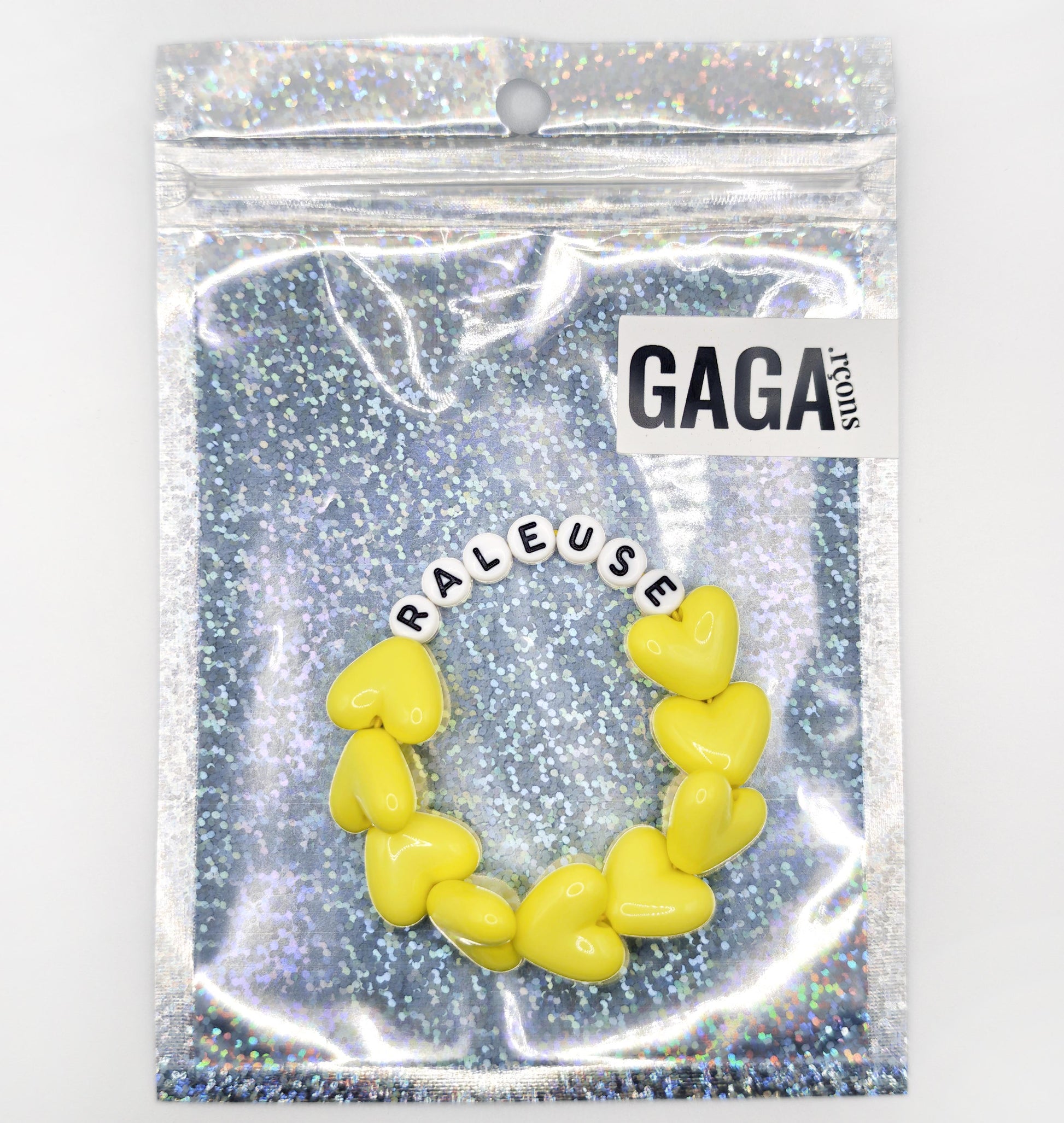 Bracelet GAGA - Full MAXI coeurs Jaune flashy & Blanc