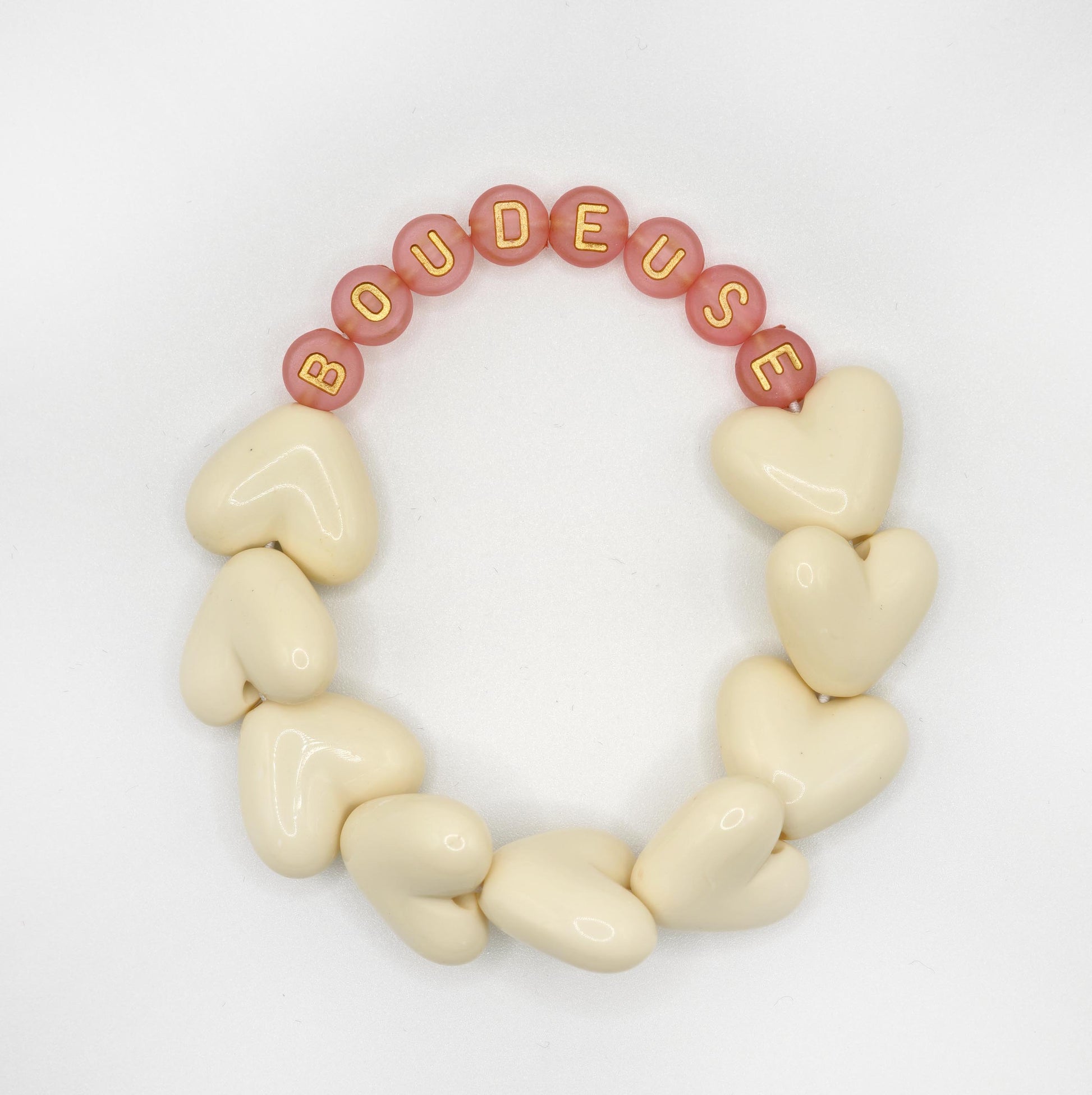 Bracelet GAGA - Full MAXI coeurs Beige & Terracotta doré