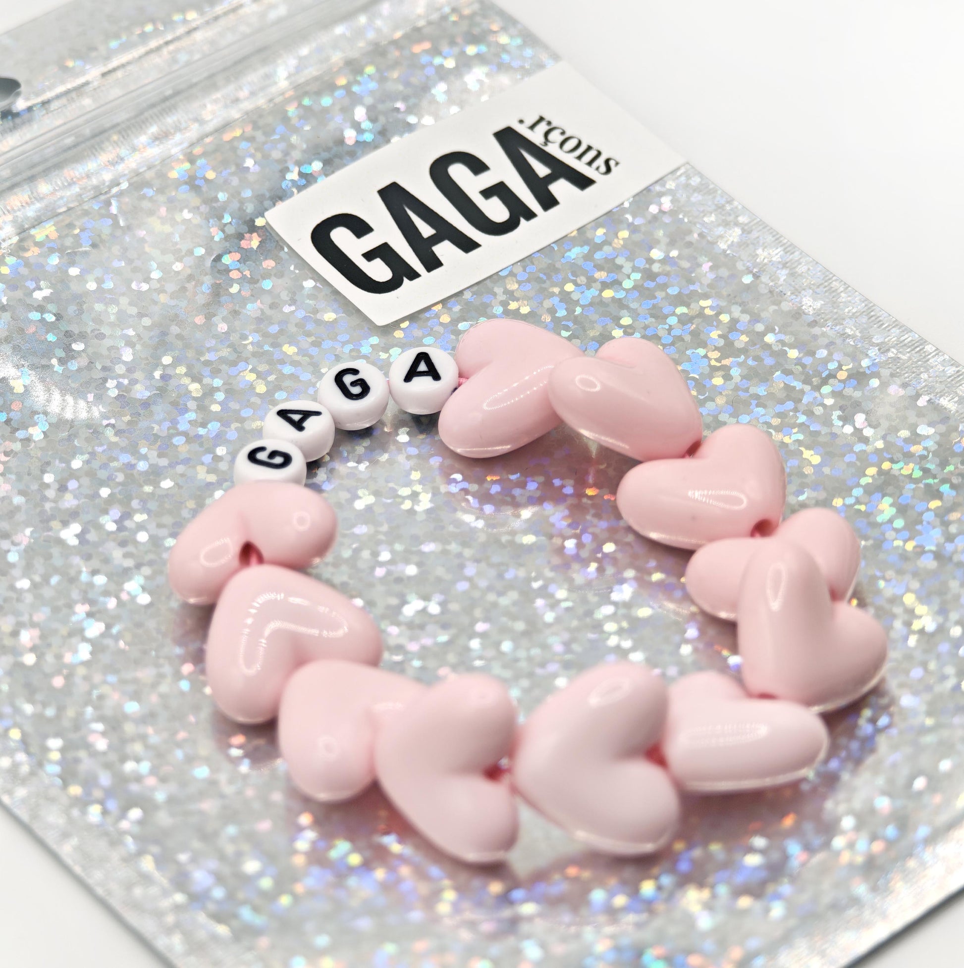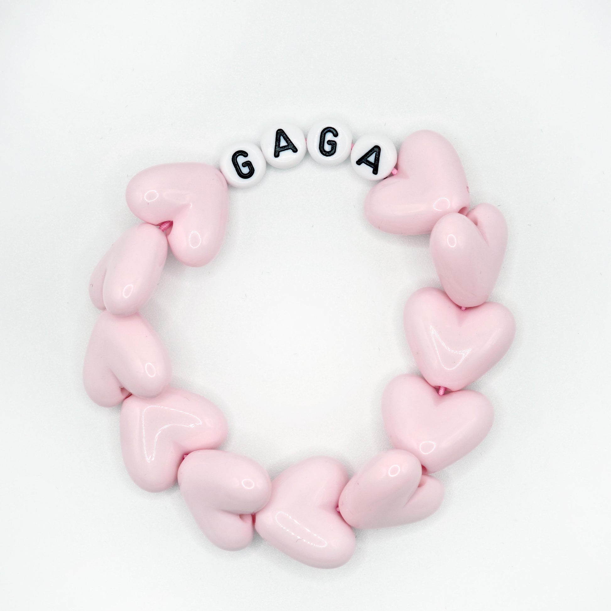 Bracelet GAGA - Full MAXI coeurs Rose pastel & Blanc
