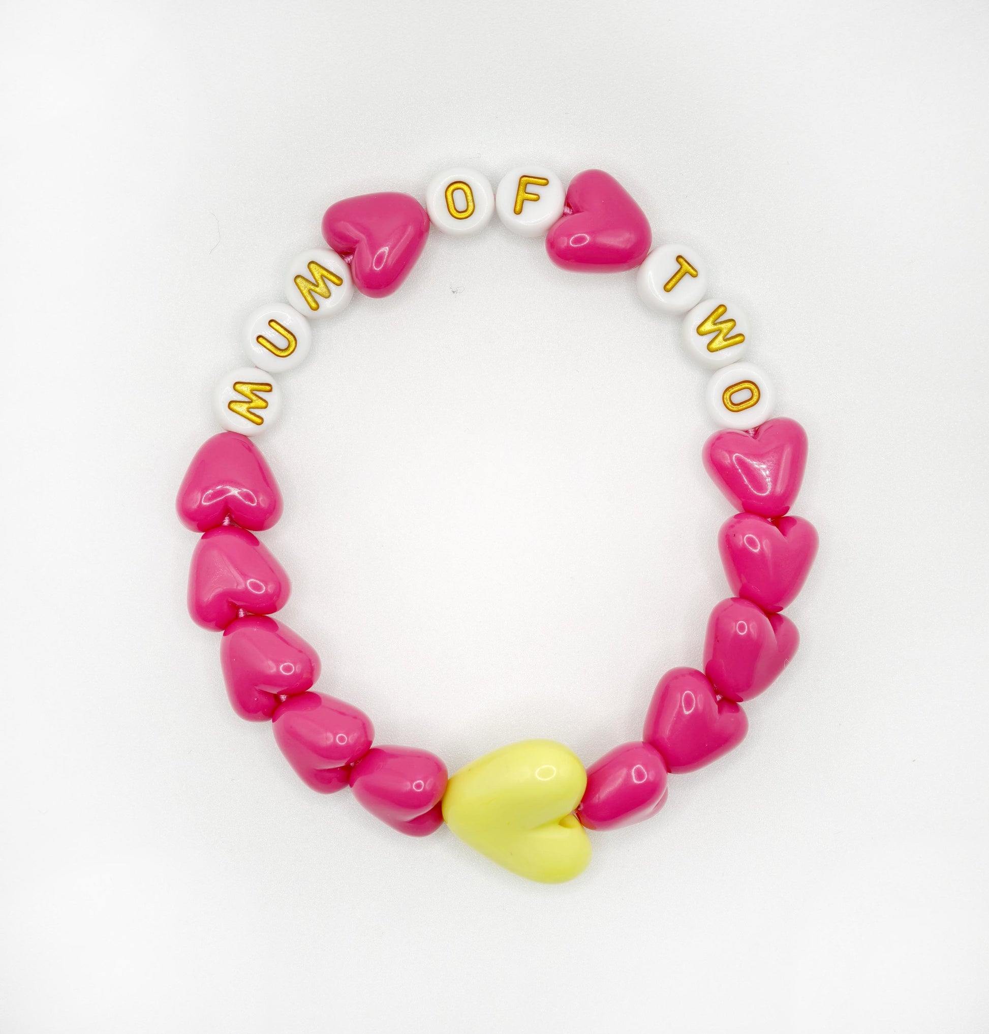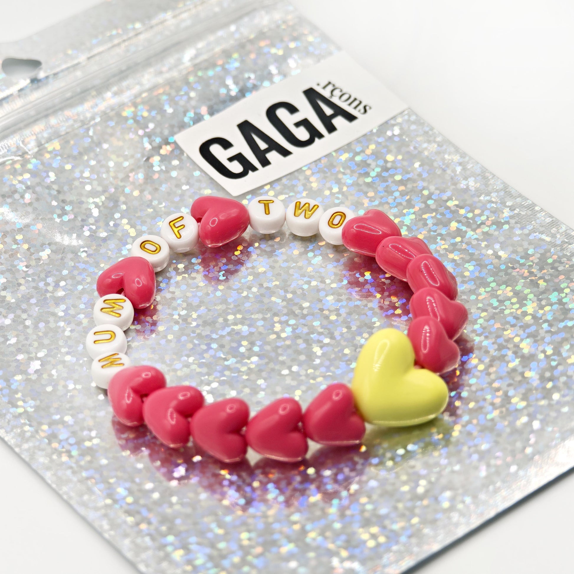 Bracelet GAGA - Fuchsia, Blanc doré & Maxi coeur Jaune flashy
