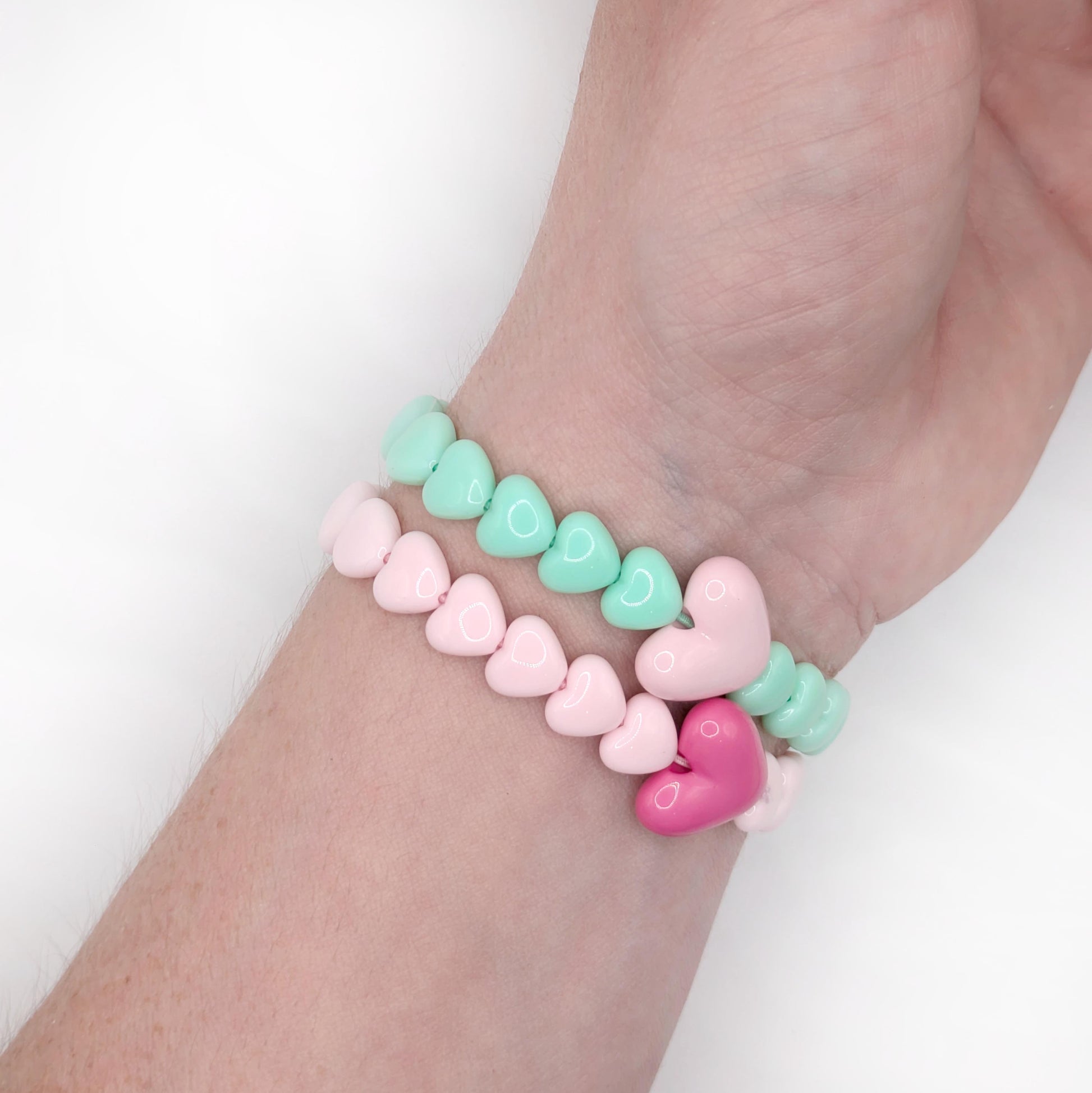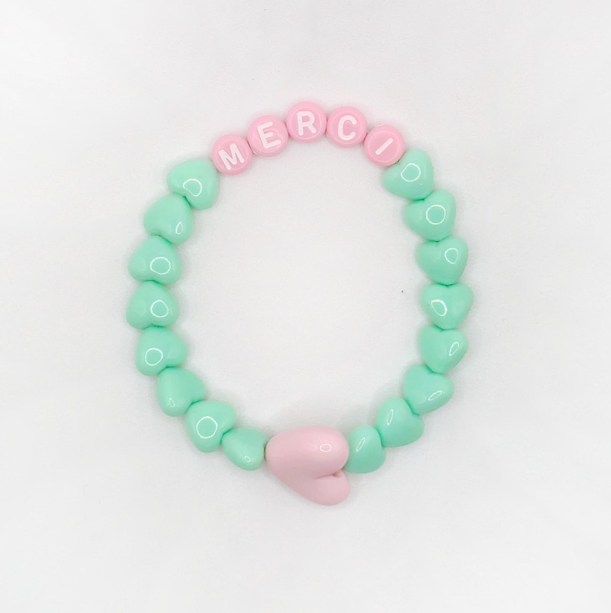 Bracelet GAGA - Menthe, Lait fraise & Maxi coeur Rose pastel
