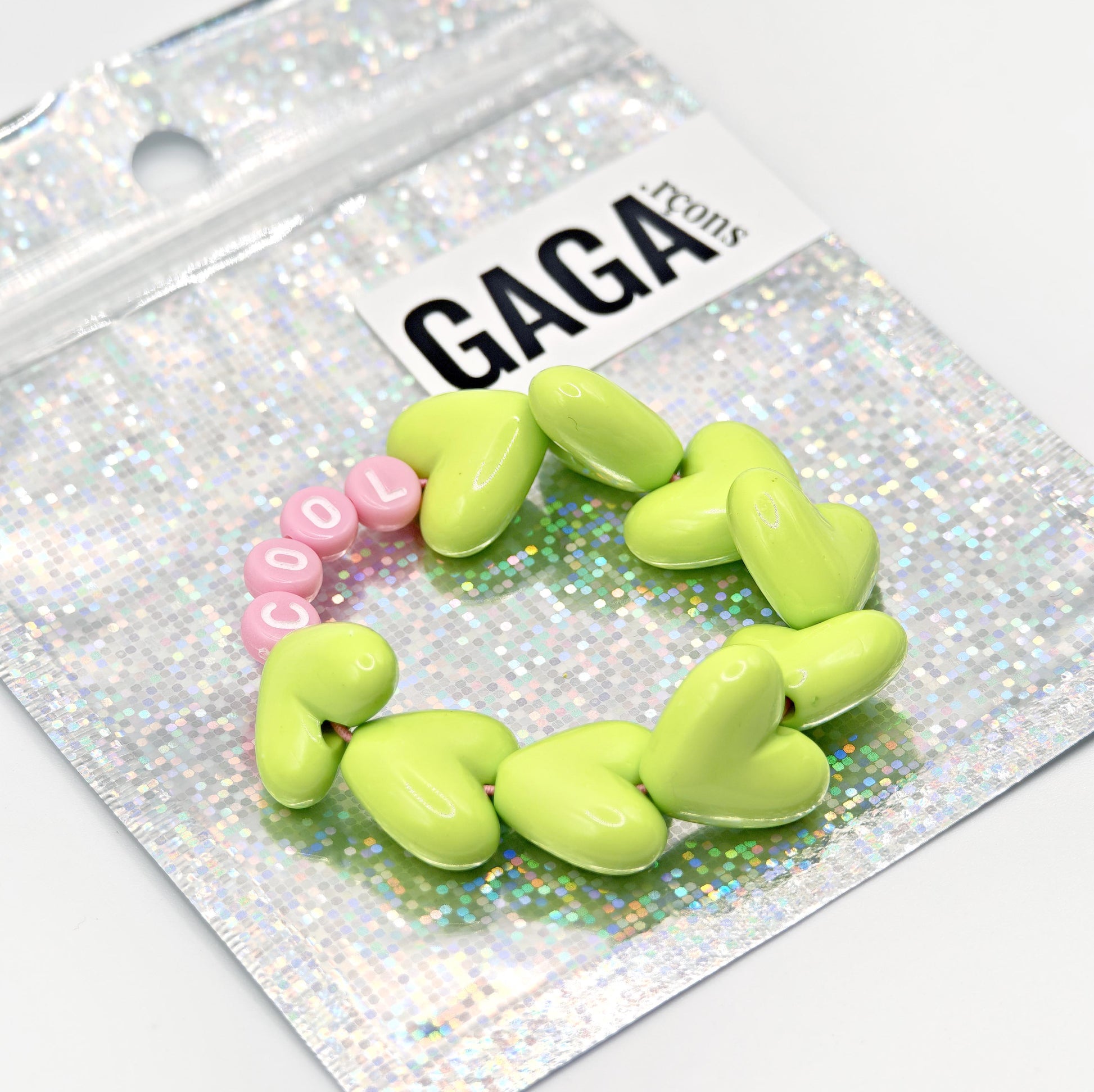 Bracelet GAGA - Maxi coeur Vert acidulé & Lait fraise