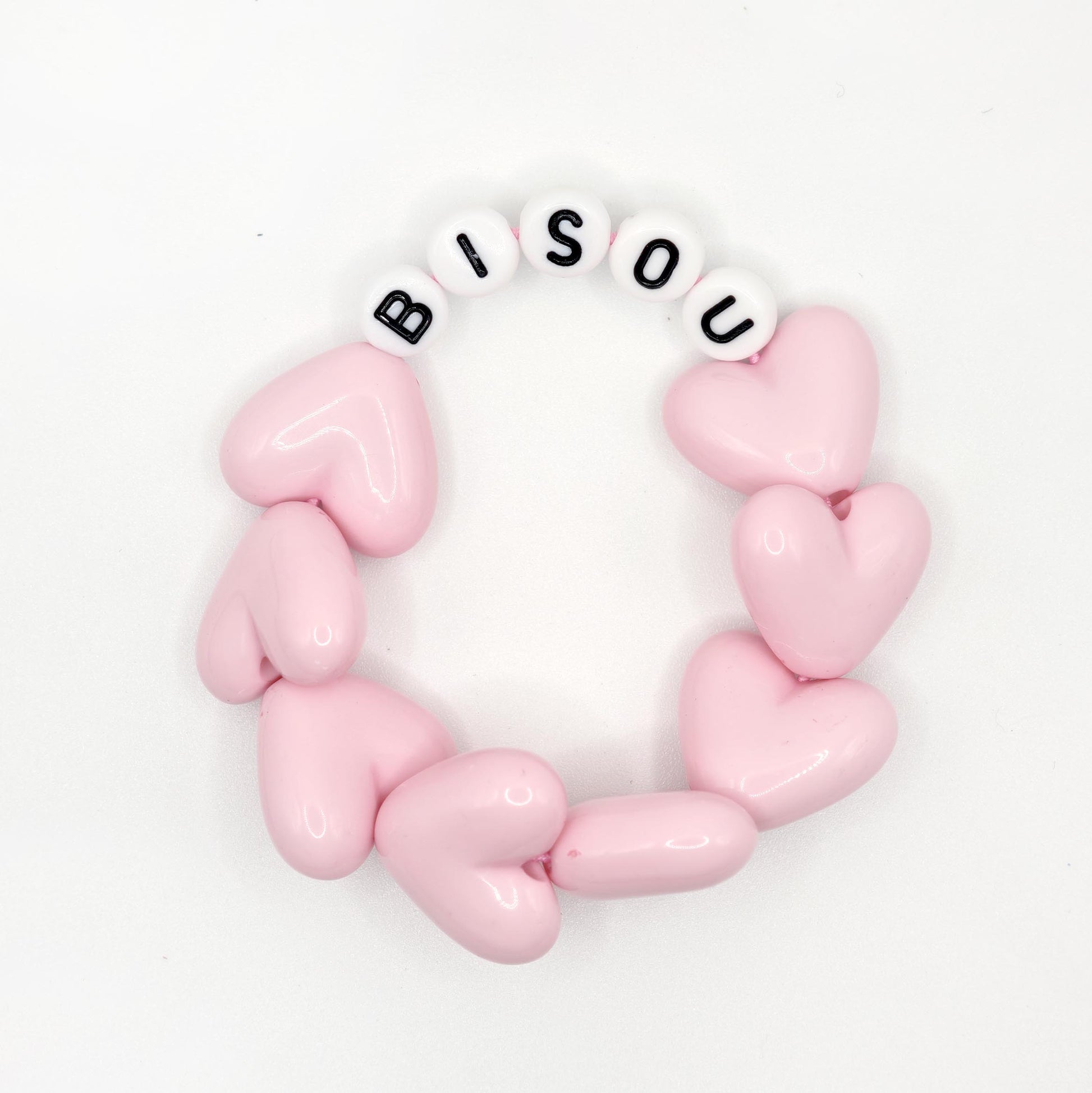 Bracelet GAGA - Maxi coeur Rose pastel & Blanc
