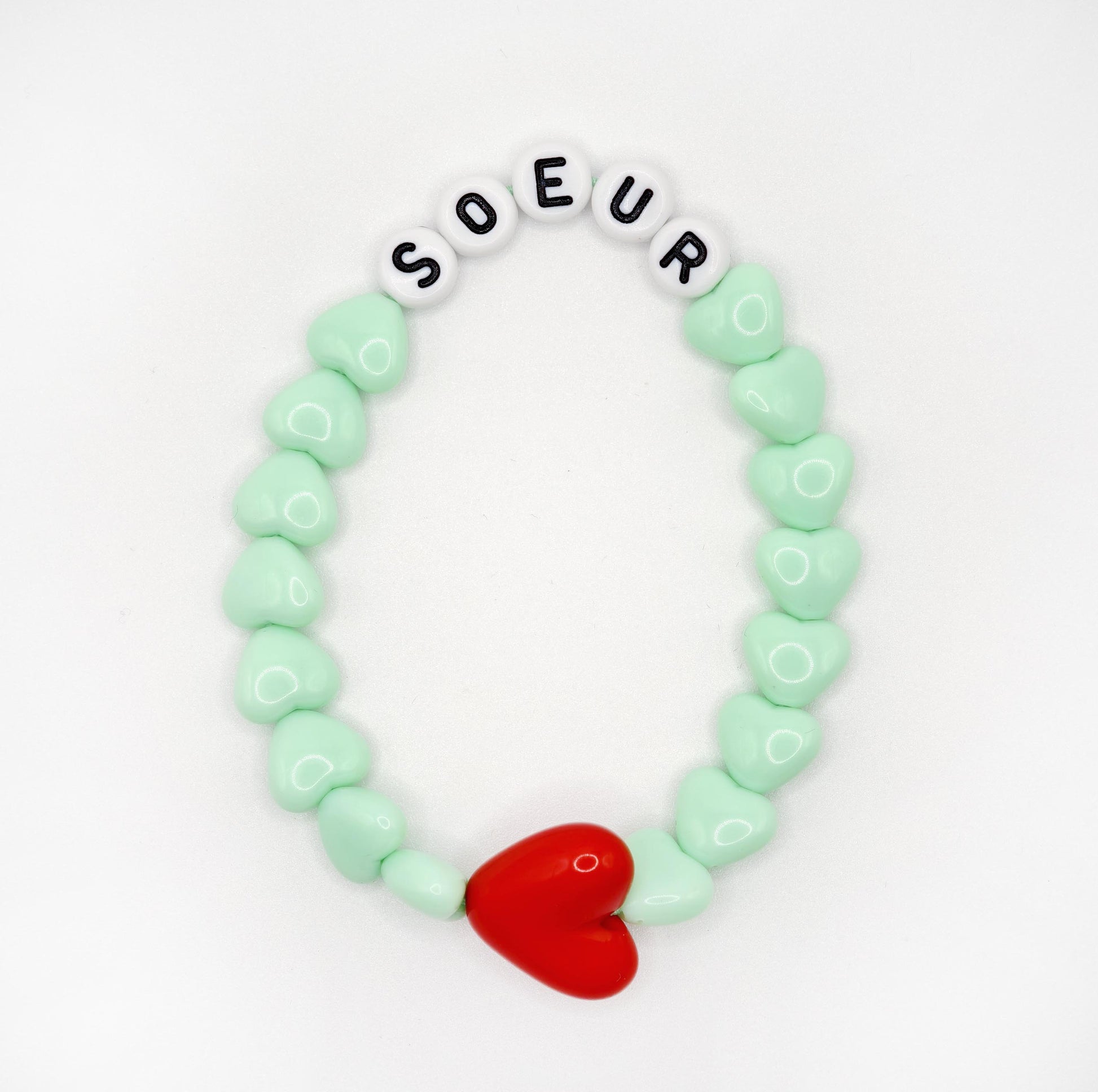 Bracelet GAGA - Menthe, Blanc doré & Maxi coeur Rouge