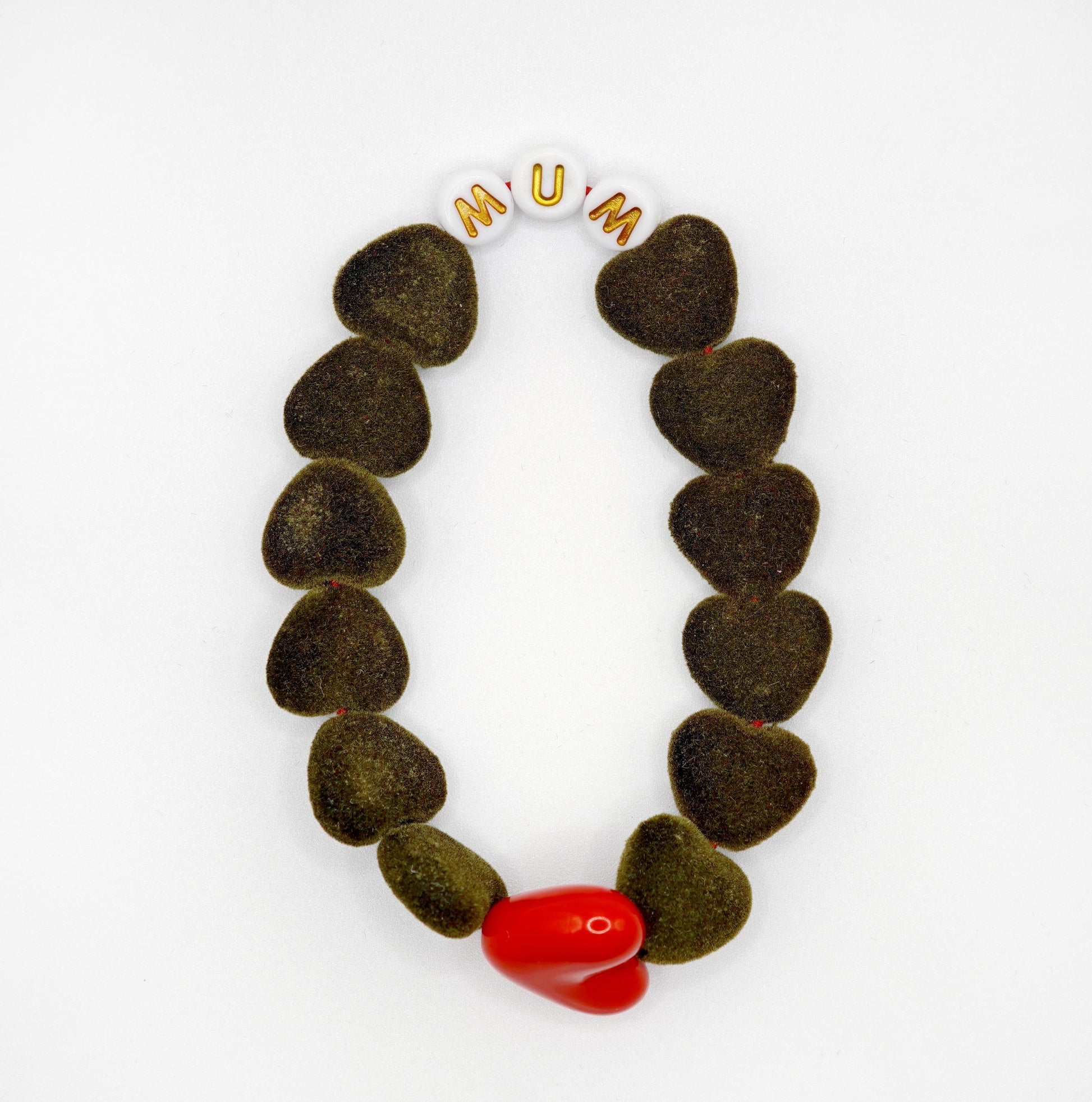 Bracelet GAGA - Velours Vert forêt, Blanc doré & Maxi cœur Rouge